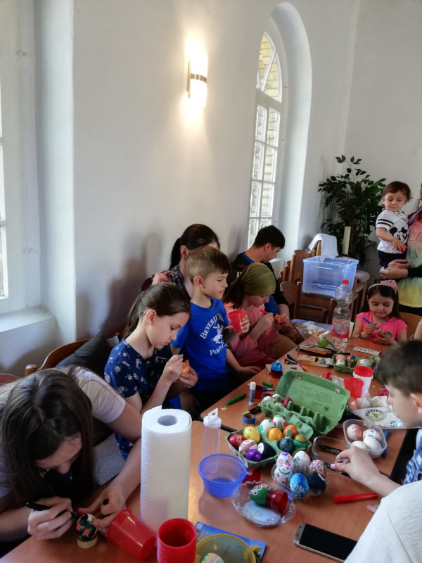 În sâmbăta Lui Lazăr (20 Aprilie 2019) ne-am adunat cu mic, cu mare să încondeiem ouă de Paste! Am avut la dispoziție aproape o oră și jumătate unde pe lângă pictarea propriu-zisă, copiii și tinerii au învățat despre această tradiție, originea ei și dezvoltarea acestui ritual în istoria creștinismului. Copiii ne au încântat cu dexteritatea, talentul și cunoștințele lor, iar rezultatele se pot vedea mai jos... A fost o zi și o activitate frumoasă, pe care nădăjduim să o reluăm cu proxima ocazie.